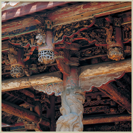 龍山寺於道光十一年(一八三一)重修時,磚、瓦、杉、石、灰料均由泉州廈門一帶運至鹿港,咸豐二年至八年(一八五二至一八五八)再次重修,均無史料記載工匠姓名,但從龍山寺的格局、屋頂型式、斗栱、瓜筒及藻井的造型,可知龍山寺大木架構出自於泉州惠安溪底匠派。溪底匠師是泉州地區最具有傳統寺廟建築實力的大木匠師之一,龍山寺的重修也是溪底匠派在台灣發展、顯現技藝的重地,日後台灣多處寺廟建築、重修,也聘請他們參與。