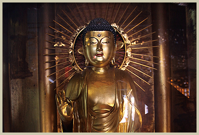 明治三十八年(一九○五),日本本願寺御授阿彌陀佛佛像送至鹿港龍山寺安座。明治三十九年一月,日本人為修繕正殿神龕做為御授佛像的供奉位置,由棟梁堀土三郎、伊藤增太郎等人,申請改築龍山寺,並獲日本政府核准。此次的工程,將原本台灣民眾所供奉的觀音像自正殿遷出,將御授阿彌陀佛像供奉於正殿,室內地坪則舖設約二尺高的木地板,做為日本和尚禮佛之處。