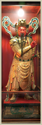 觀音木雕像正殿神龕內有一尊約三尺高的觀音佛像,為昭和二年(一九二七)三月二十日由鹿港街長陳懷澄、信徒總代辜顯榮等人捐資雕刻,安置於右廂廊,供民眾祭祀,昭和三年(一九二八)龍山寺隆重舉行遶境安座儀式。此時由於後殿尚未重建,所以先將佛像安座在護龍,時適鹿港天后宮重修,媽祖神像暫置三川殿,故鹿港有一句台語俚諺:「龍山寺觀音媽站護龍,媽祖站拜亭,田仔伯戲扮不停」。