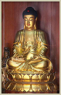 釋迦牟尼佛龍山寺後殿供桌前,由信徒迎奉釋迦牟尼佛,左右脅侍分別為文殊菩薩、普賢菩薩。左脅侍文殊菩薩專司「智慧」,坐騎為一青獅,表示威猛,能降伏一切邪魔。右脅侍普賢菩薩專司「理德」,坐騎為一六牙白象,表示大慈善心。