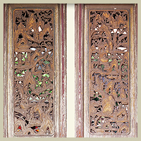 龍山寺五門殿、正殿的木雕為道光時期的風格,拜殿的木雕為咸豐八年(一八五八)重修的作品,目前拜殿木雕可找到「咸豐通寶」的落款,後殿則為昭和十三年(一九三八)重修的作品。以龍山寺的木雕而言,清代中葉的作品較為粗獷,日治時期的作品則較精緻。